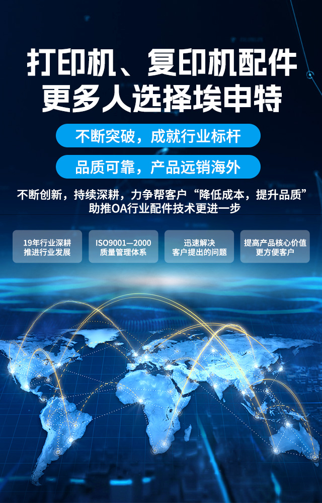 成立于2005年,下屬工廠從2000年始一直致力于打印機(jī)、復(fù)印機(jī)配件的研發(fā)、設(shè)計(jì)、制造及銷(xiāo)售。